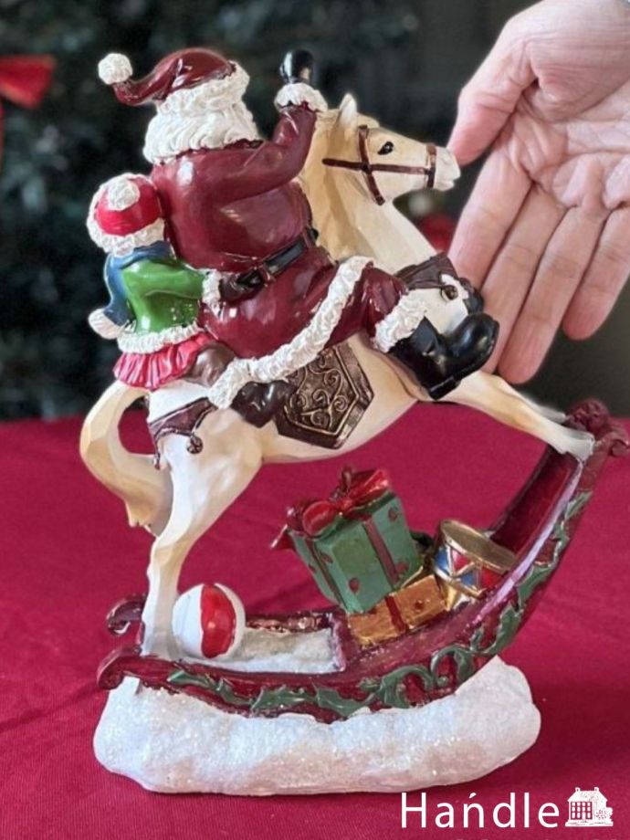 白馬に乗ったサンタさんが可愛い、クリスマス用の卓上オブジェ (商品番号 cm-376)