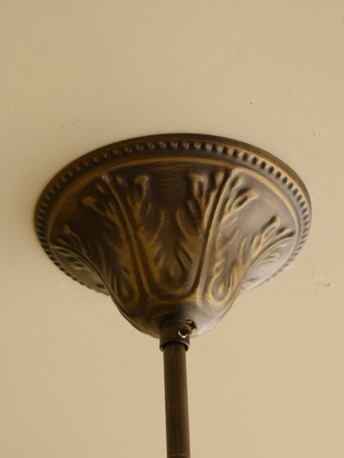 天井への取り付け部分のカバーもアンティーク調の凝ったデザインです。