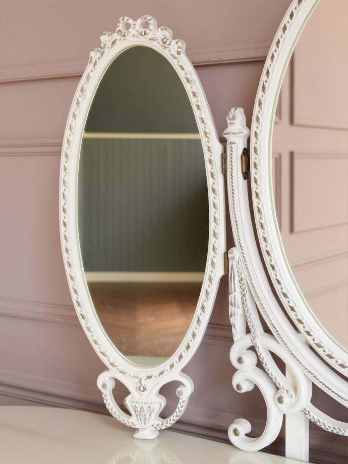 まるでもおとぎ話の中でお姫様が使っていたんじゃない?!って思っちゃうくらいに可愛い三面鏡は、実は白い塗装も全て剥離して塗り直しているのでとってもキレイ!