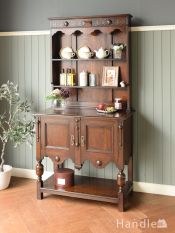 - バルボスレッグのおしゃれなウェルシュドレッサー、英国アンティークのオーク材のオープンキャビネット (q-3423-f)
