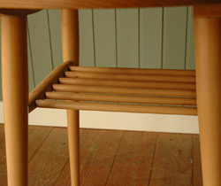 足元にある格子の物置きは、読みかけの本や新聞を置くのに便利。