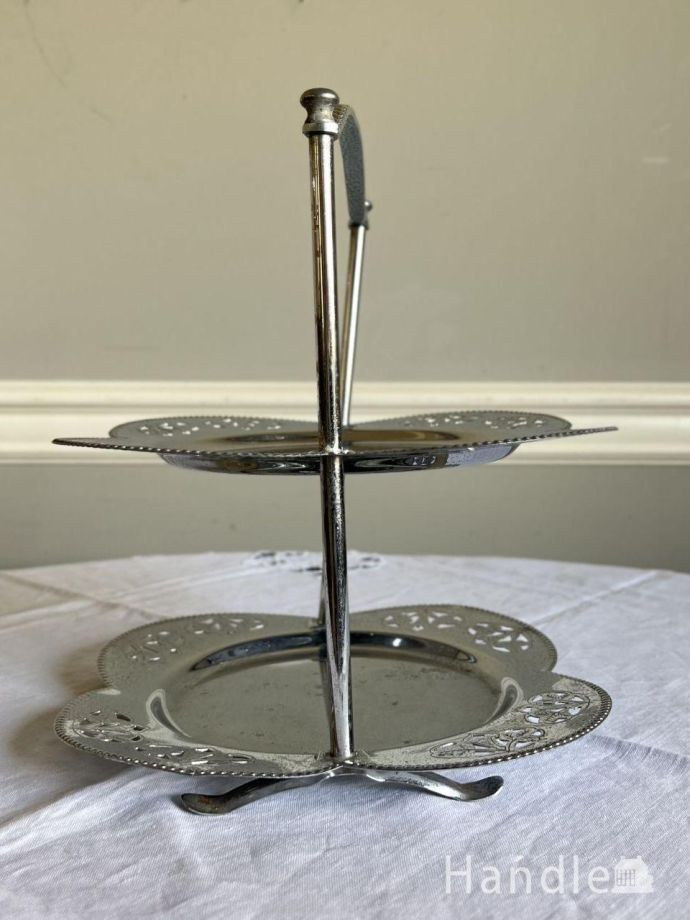 イギリスから届いたアフタヌーンティーの食器、シルバープレートの2段タイプのケーキスタンド (商品番号 d-1982-z)