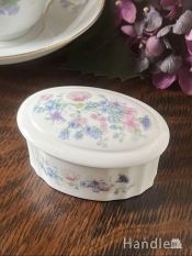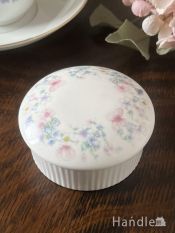 フタ付きの小さな小物入れは、もともと、ビューティーセットと呼ばれる、ドレッサーの上に置いて使われていたものの一つ。