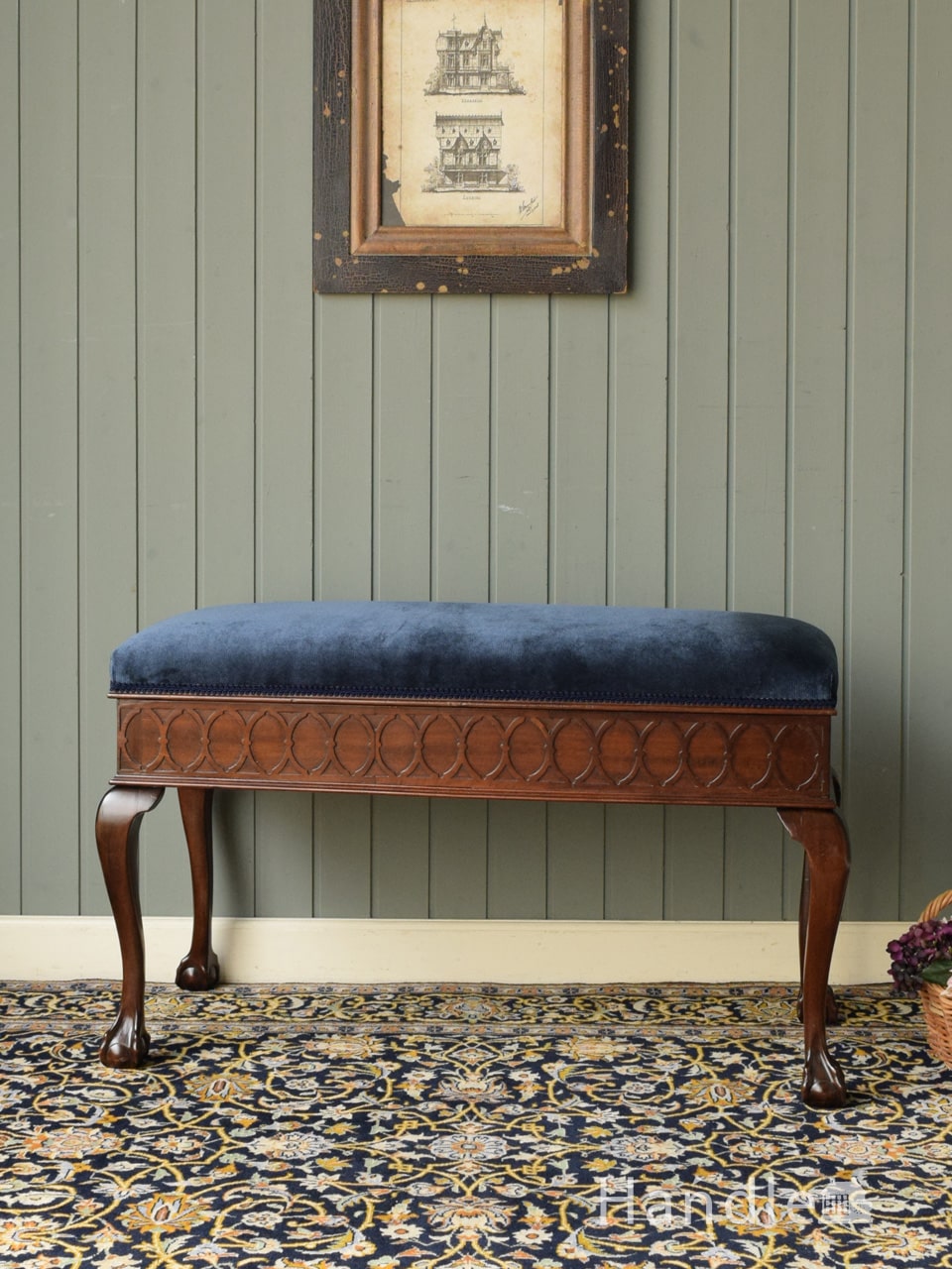 英国アンティークのロイドルーム、ブランケットボックスタイプのおしゃれなベンチ収納家具 (商品番号 d-983-c)