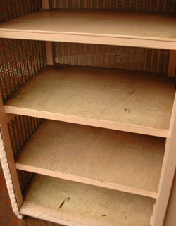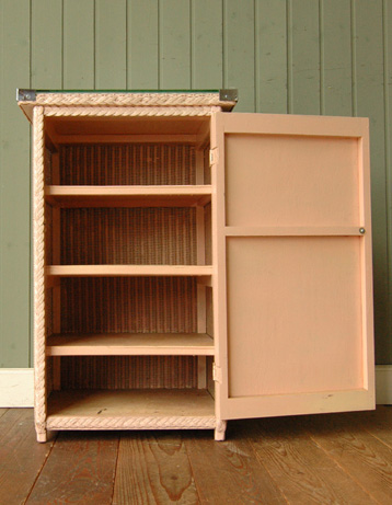 - ビーディング扉が華やかな英国アンティークの家具、ツイスト足のおしゃれなサイドキャビネット (q-3428-f)