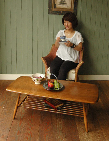 - アーコールのおしゃれなヴィンテージテーブル、マガジンラック付きのコーヒーテーブル (k-3411-f)