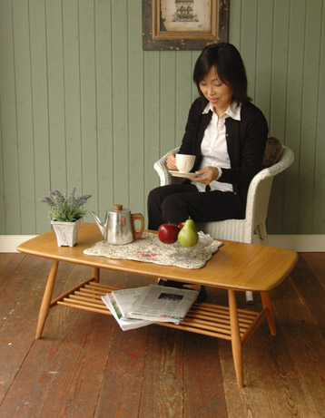 - アーコールのおしゃれなヴィンテージテーブル、マガジンラック付きのコーヒーテーブル (k-3411-f)