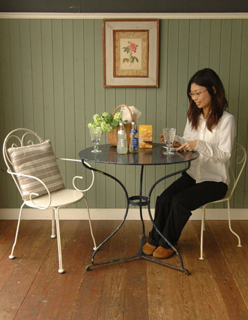 アンティークの味わいが残る風合いたっぷりのガーデンテーブルが届きました。室内でも屋外でもお使いいただけます。