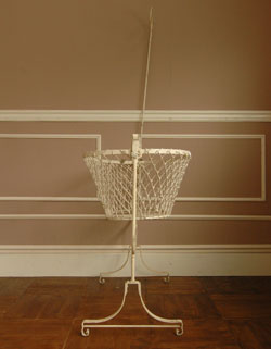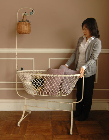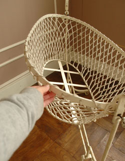 とってもめずらしく、気になるアンティークが届きました。この色、姿!どこから見てもおしゃれで可愛い。思わず微笑んでしまいます。 実は、昔、赤ちゃんを入れていたゆりかごなんです。