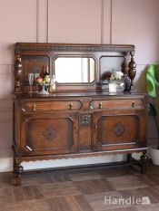 - エリザベス様式の重厚なアンティーク家具、大きな鏡が魅力のオーク材のミラーバックサイドボード (i-223-f)