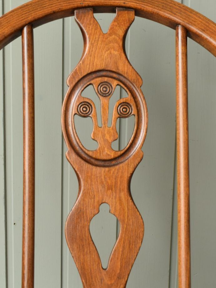 アーコールチェアの背もたれ - アザミの花(シスル)が背もたれに彫られているシスルバックチェア。スッキリしたフォルムにプラスされた背中のアクセントがめずらしいアーコールです。