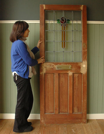 大きなステンドグラスに心が引き込まれてしまうアンティークのドア。