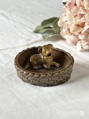 - カゴに入った可愛いワンちゃんの置物、イギリスから届いたWADE社のフィギュリン (k-6081-z)