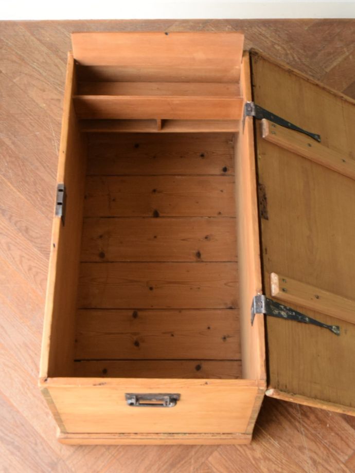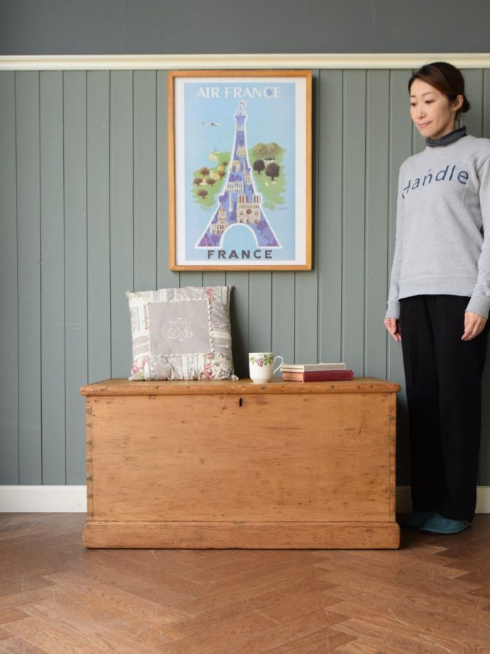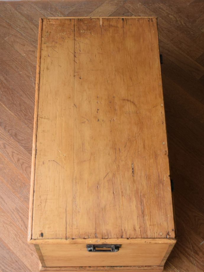 イギリスから届いたアンティークの収納箱、オールドパイン材のブランケットボックス (商品番号 h-112-f)