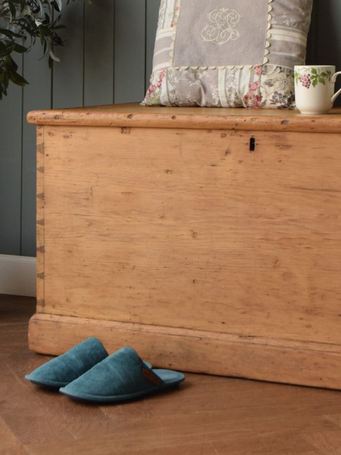 見つけた時に、思わず目をパチクリさせてしまったオールドパイン材のブランケットボックスが久しぶりにイギリスから到着しました。
