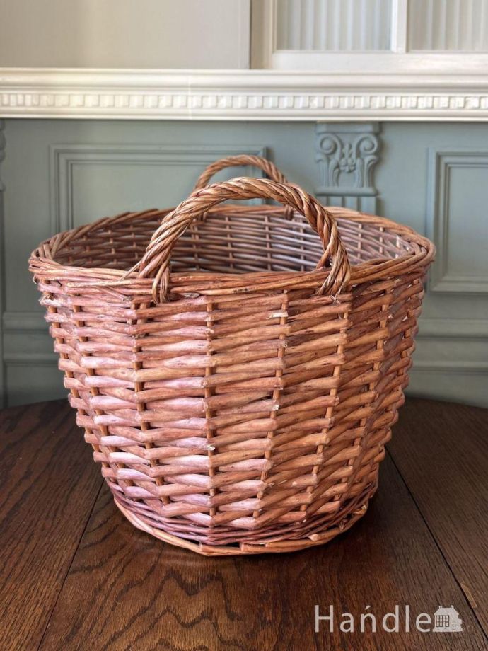 フランスから届いたおしゃれなパニエ、両手で持てる大きなサイズのアンティークバスケット (商品番号 h-960-z)