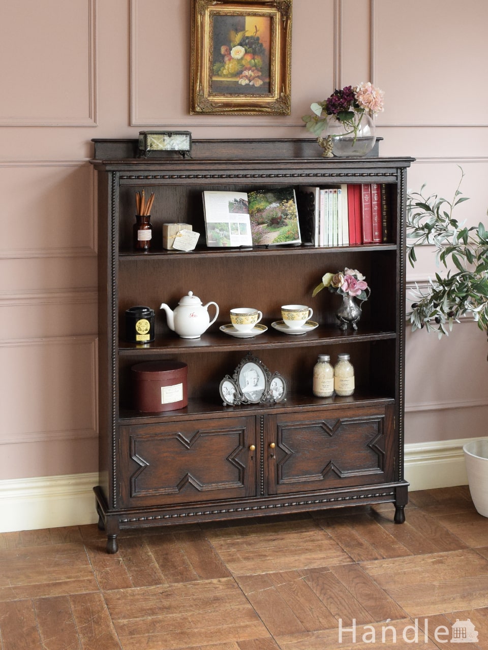 - たっぷり収納できるおしゃれなアンティークの本棚、英国から届いたビーズ模様が可愛いブックシェルフ (i-216-f)