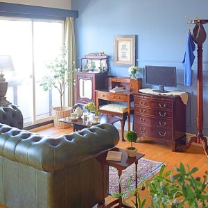 デスクの隣にテレビを置いて、さらにちょうどいい距離でチェスターフィールドを置いてしまったので、めっちゃリラックス出来ちゃうお部屋。なかなか仕事が進みません・・・(苦笑)