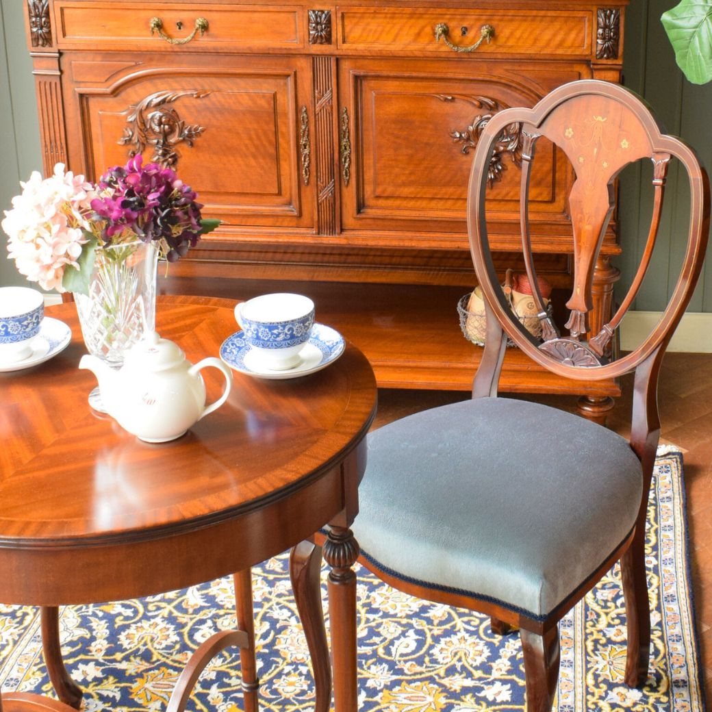 英国から届いた象嵌が美しい椅子、アンティークのヘップルホワイトチェア