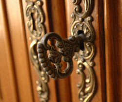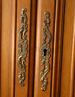 フランス製らしく、ゴージャスな彫がたっぷりのキャビネット。