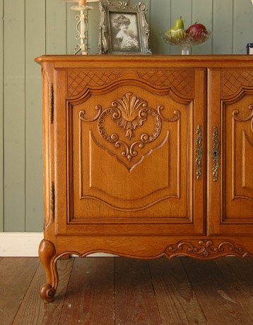 - フランスから届いたロココ様式のアンティーク家具、美しい浮き彫りが華やかなフレンチサーバー (k-3410-f)