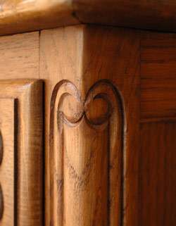 - アップライドモールディングの装飾が美しい、オーク材のアンティークカップボードチェスト (i-208-f)