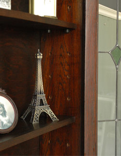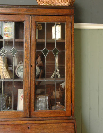- 美しいステンドグラス扉のおしゃれなデスク、英国アンティークのビューローブックケース (z-315-f)