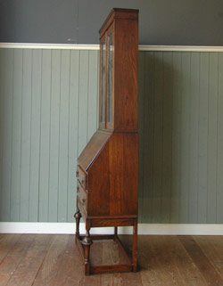 - 英国アンティークの本棚付きデスク、オーク材のおしゃれなビューローブックケース (j-3059-f)
