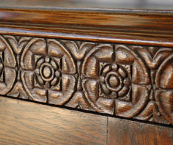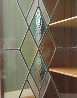 - 幾何学模様のステンドグラスが美しい本棚、英国アンティークのブックシェルフ (q-3444-f)