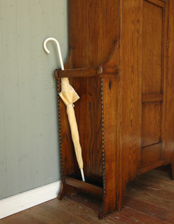 とってもめずらしく、両サイドにはステッキスタンドがも付いています。 昔はホールローブとして玄関脇に使われていたのかもしれません。