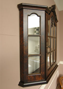 まるで中世のお屋敷から飛び出してきたような、美しく品のあるウォールキャビネット。細部にまでこだわったデザインは風格があります。