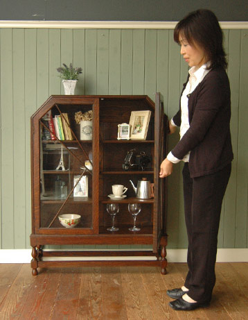 - シノワズリスタイルのおしゃれなショーケース、英国アンティークガラスのキャビネット (q-3419-f)