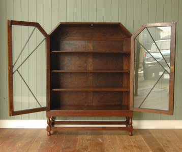 - 丸いバルボスレッグが印象的な本棚、英国アンティークのおしゃれなブックケース (q-3443-f)