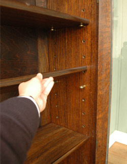 - 幾何学模様のステンドグラスが美しい本棚、英国アンティークのブックシェルフ (q-3444-f)