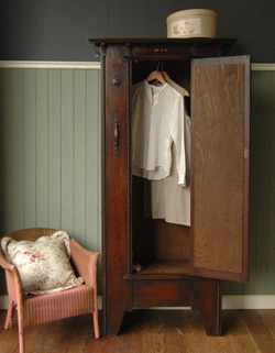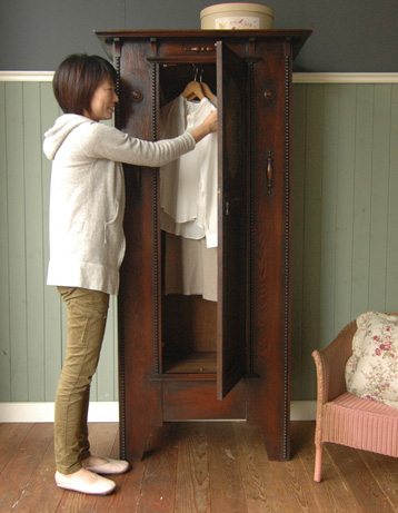 - 上質な素材を使ったアンティーク英国家具、スモールワードローブ(洋服掛け) (q-3301-f)