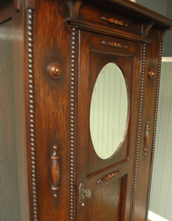 - 帆船の彫がカッコいい英国のおしゃれなアンティーク家具、オーク材のワードローブキャビネット (q-3396-f)