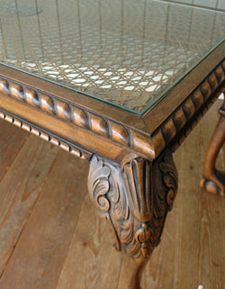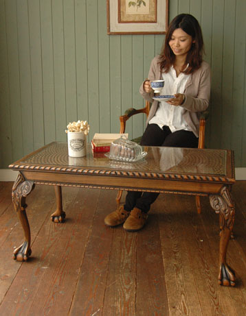 フランスの優雅なサロンテーブルです。彫や編み目がとっても美しいです。 センターテーブルもフレンチになるとサロンテーブルと呼ばれ、さらにオシャレな雰囲気に!