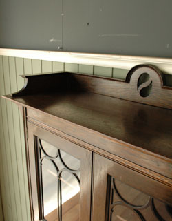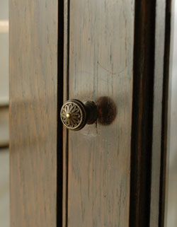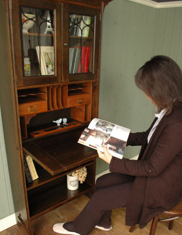パソコンや手紙を書くためのデスクって味気ないものが多いのですが、こんなにガラスのキレイなキャビネットが付いているものだったら、最高です!