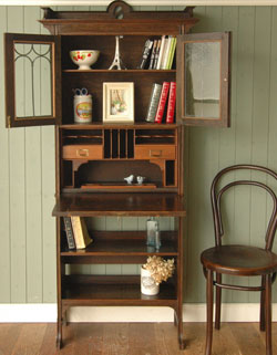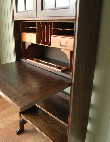 - アールデコスタイルの英国アンティーク家具、収納付きライティングビューローブックケース (q-3354-f)