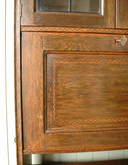 - 美しいステンドグラス扉のおしゃれなデスク、英国アンティークのビューローブックケース (z-315-f)
