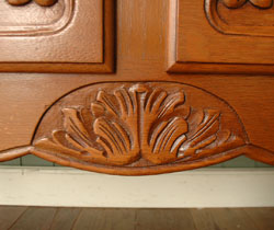 迫力のある華やかな彫には思わずうっとりしていまいます。扉を開くと、中には大きな収納スペースが。