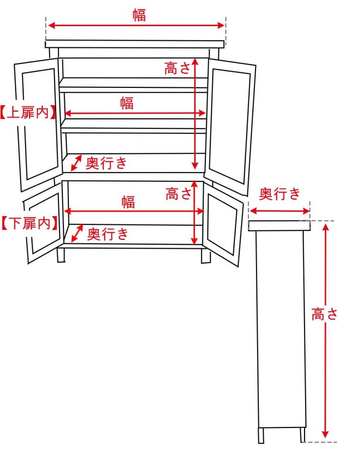 【 上段内 】幅71.5×奥行き34×高さ128cm 【 棚板 】高さ調整可能 奥行き29.5cm 【 下段内 】幅71.5×奥行き35×高さ37.5cm |