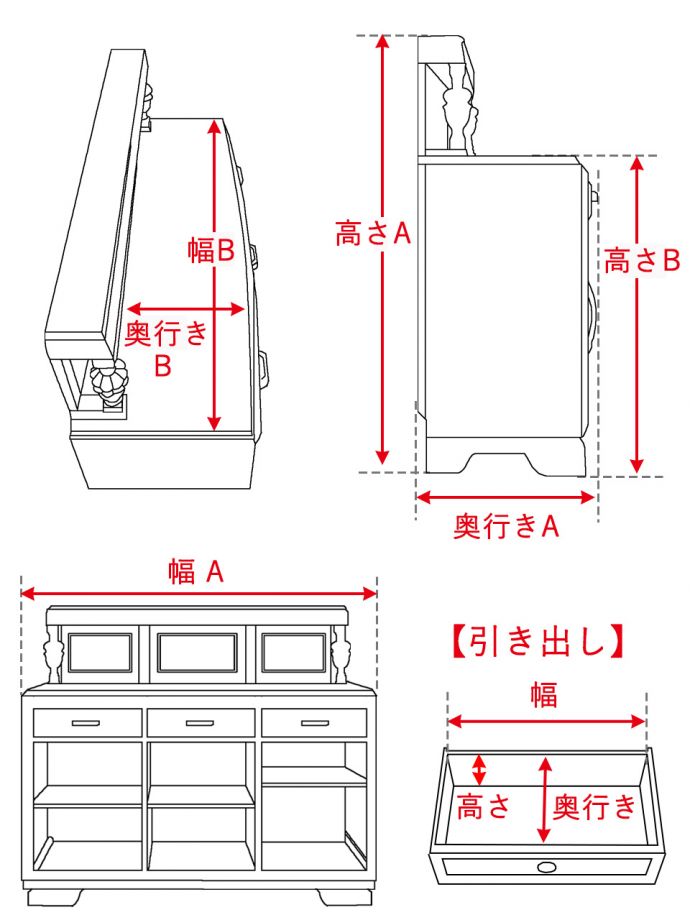 幅A:153cm B:151×奥行きA:55cm B:47×高さA:132cm B:95cm