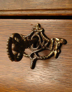 - アップライドモールディングの装飾が美しい、オーク材のアンティークカップボードチェスト (i-208-f)