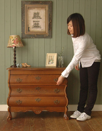 見るだけじゃなく実用的にしっかり使えるのもこのチェストのよさ。たっぷり収納できるタイプなので、リビング、寝室、書斎、どこでも置いて使って下さい。