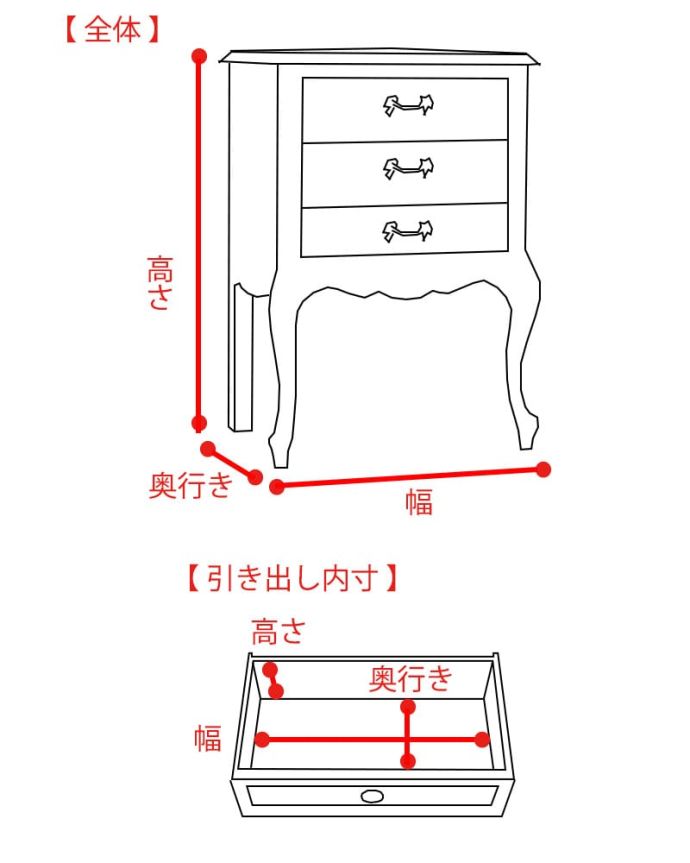 フランスの家具らしい美しいフォルム - デザインがステキなチェストは、収納はもちろん、目でも楽しめます。どこに置いても存在感バツグンの美しさです。
