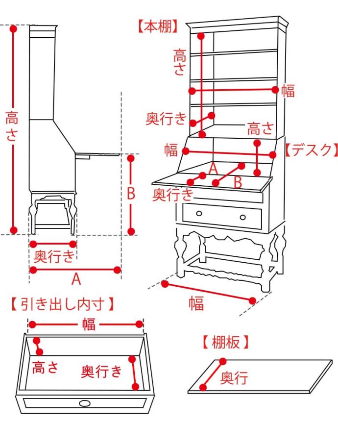 A:66cm B:71cm 【 本棚 】 幅72×奥行き20×高さ89cm 【 棚板 】高さ調整可能 奥行き19cm 【 デスク 】 幅73×奥行きA:28 B:65×高さ28cm 【 引き出し 】 (1段目)幅64×奥行き32×高さ9cm (2段目)幅72×奥行き32×高さ13cm (3段目)幅72×奥行き33×高さ16cm |