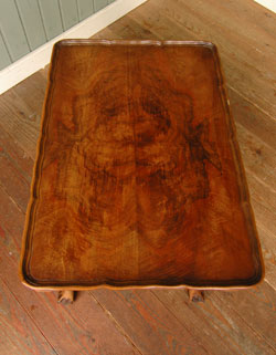 - 英国輸入のアンティークのコーヒーテーブル、マホガニー材の杢目が美しいローテーブル (q-3409-f)