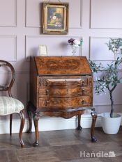 - 杢目が美しいアンティークのレディデスク、ウォールナット材のライティングビューロー (q-3239-f)