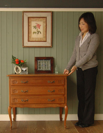 寝室や書斎など落ち着いた雰囲気のお部屋にいかがですか?上に鏡や化粧品を並べてドレッサーのように使っても様になります。3段にわかれているので、タオルや衣類などをしまっておけてとっても便利!。